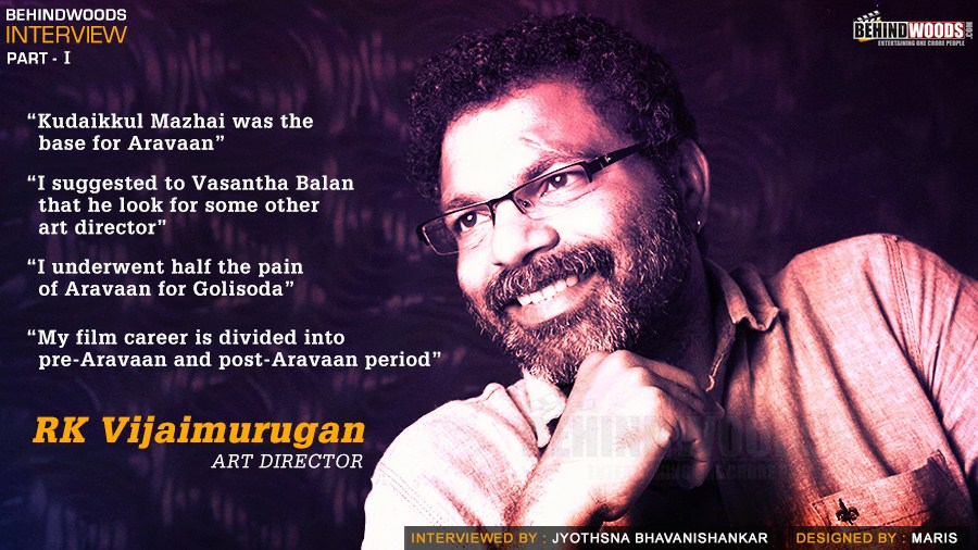 Interview Team : JyothsnaWhen people thought that he can only make astounding impression with his set designs, art director Vijaimurugan appeared in front of the camera as the villainous Mayilu in Golisoda and floored people. Responsible for art direction in films like Aravaan, Golisoda, Jigarthanda, Kadhai Thiraikadhai Vasanam Iyakkam, Velai Illa Pattadhari, the talented but simple and down-to-earth technician takes Senior Editor Jyothsna Bhavanishankar on his journey in the industry, the making of Aravaan, the Manda Kenaru of Paandi Naatu number in Jigarthanda and many more.