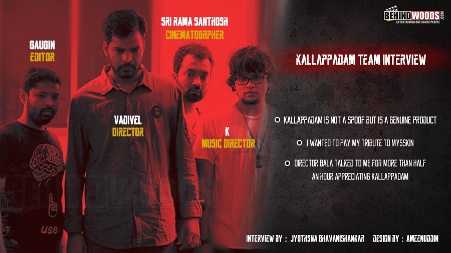 Interview Team : JyothsnaMeet J Vadivel, K, Srirama Santhosh and Gaugin who are reprising their real life roles as Director, Music Composer, Cinematographer and Editor respectively in Kallappadam that hits the screens tomorrow, 20th March. The film is about four young men’s struggle to make it big in film industry. In a freewheeling chat with Jyothsna Bhavanishankar, the quartet discusses about the film and their journey making it.