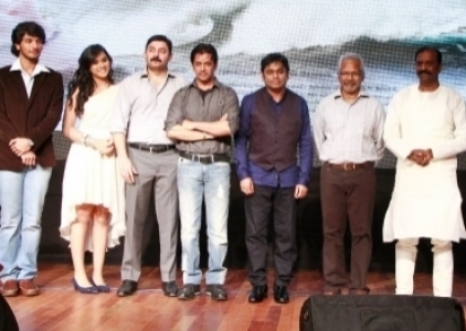 It was then the moment for the spotlights to be focused on the two stars in the making, Gautham Karthik and Thulasi Nair. While the hero was introduced by his father, Thulasi was introduced by Mani Ratnam, as Radha was unable to attend the event. Both the newcomers sought the blessings of the audience and the press and said that they felt at home working with the team of Kadal. Mani Ratnam revealed that he saw the character Thomas in Gautham the moment he saw him and he then sparked the idea to approach Radha’s daughter to try and retrace Bharathiraja’s steps in Alaigal Oivadhillai. He said that when he first saw Thulasi, she was jumping up and down in her school uniform, but once she was in front of the camera she turned into her character, Beatrice, with total ease. When quizzed about her comfort levels being in front of the camera, Thulasi felt that acting was in her blood so she never felt nervous.