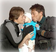 The baby is enjoying the entire adventure to the fullest,